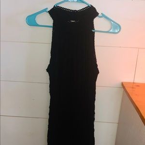 Black, lace dress for formal occasions. Form fitting but has a decent amount of stretch. Great used condition.