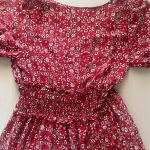 Max Studio Dress Medium Red with flowers. It’s never been used.
