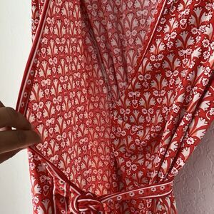 Max Studio Dress Women M Red Floral True Wrap Midi Feminine Garden Party Boho