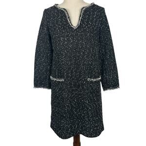 Max Studio Dress Women Medium Black White Tweed Shift Classic V-Neck Preppy