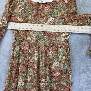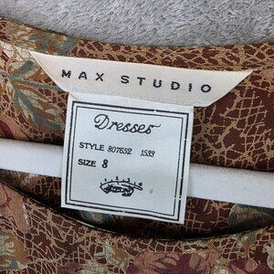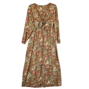 Max Studio Dress Womens 8 Brown Floral Long Sleeve Maxi Tie Back A Line Made USA