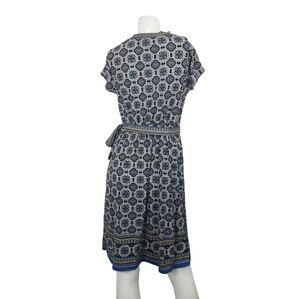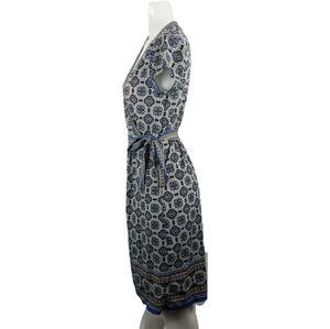 Max Studio Dress Womens Small Blue Printed Faux Wrap Jersey