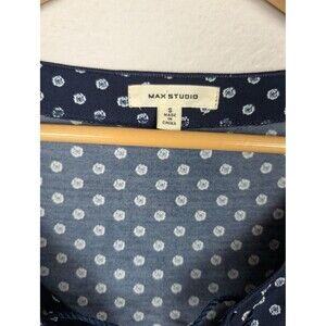 Max Studio Dress Womens Small Navy Blue Boho Bell Sleeve Tassel V-Neck 6912W66