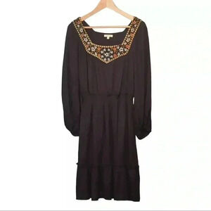 Max Studio Embroidered Black Long Sleeved Dress Size Small NWT boho tired skirt