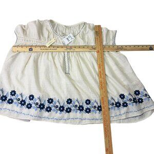 Max Studio Embroidered Boho Peasant Top Ivory Blue Floral Tunic Blouse SZ:L NWT