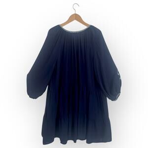 Max Studio Embroidered Peasant Dress Size XL Navy Blue Boho Oversized Tassel