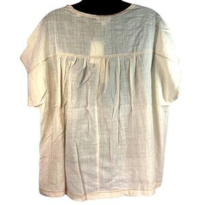 MAX STUDIO London Women's White Bohemian Embroidered Relaxed Top Sz: XL Antique White/Khaki, New With Tags