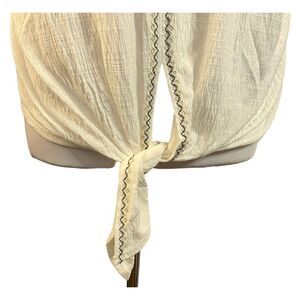 Max Studio Embroidered Tie Front Gauzy Peasant Top