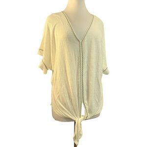 Max Studio Embroidered Tie Front Gauzy Peasant Top Sz 3X Generous Sizing NEW