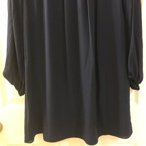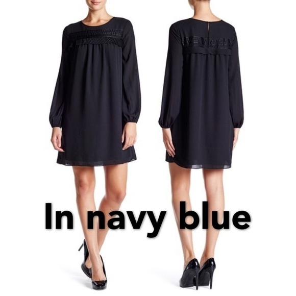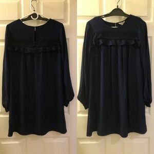 Max Studio Empire Lace Trim Dress in Navy Blue