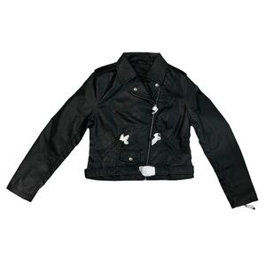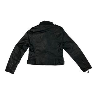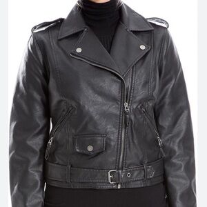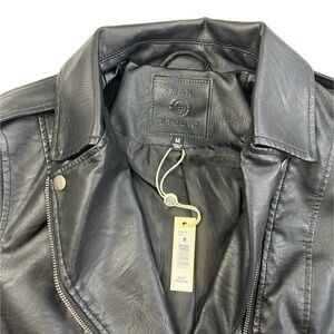 Max Studio Faux Leather Cropped Moto Jacket Black New Punk Metal Silver Goth