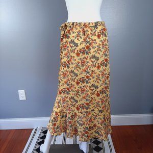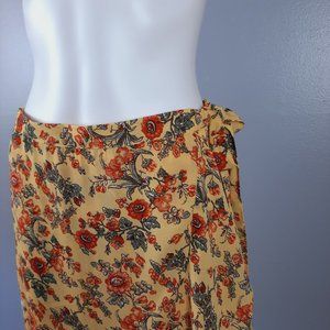 Max Studio unlined pull-on, faux wrap skirt in yellow floral print with side tie