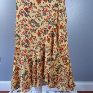Max Studio Faux Wrap Skirt Women's Size XS Yellow Floral Print Side Tie Ruffle