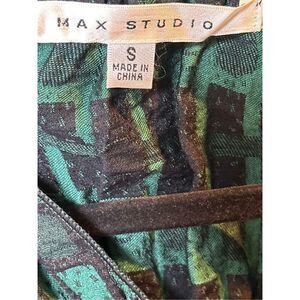 Max Studio Fit And Flare Drop Waist Smocked Geometric Print Dress Size S Black/Green