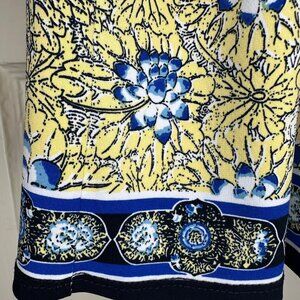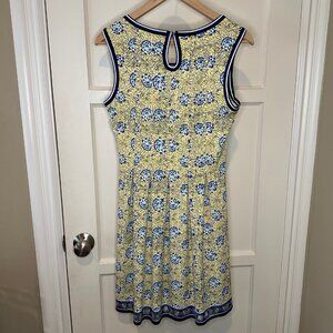 Max Studio Fit and Flare Sleeveless Floral Mini Dress, Blue/Yellow, Size Small.