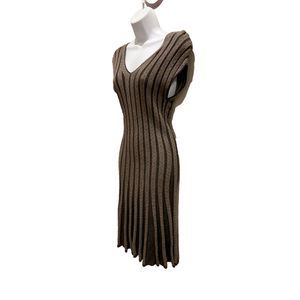 Max Studio Fitted Ribbed Knit Sleeveless Brown & Gray Sweater Dress sz S