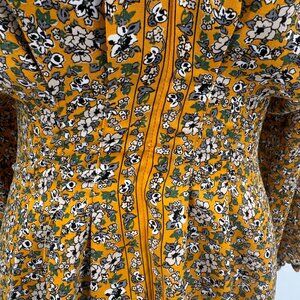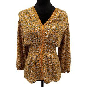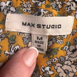 Max Studio Floral Balloon Sleeve V-Neck Blouse M Polyester Womens Top