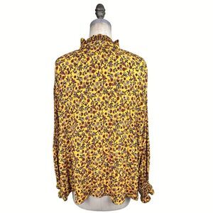 Max Studio Floral Blouse Womens Large Ruffle Balloon Sleeve Keyhole Neck Cottage