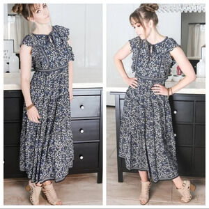 Cascading floral dress with ruffled accents and tie at chest. Check out other listings for other items pictured including home decor and Victoria Secret sweater for layering.