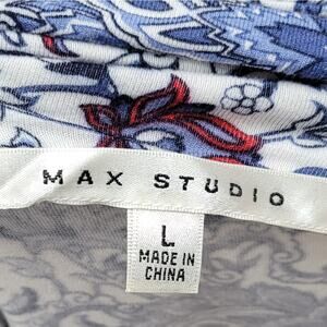 Max Studio Floral Fold-Over Maxi Skirt Size L White Multi Boho Casual Stretchy