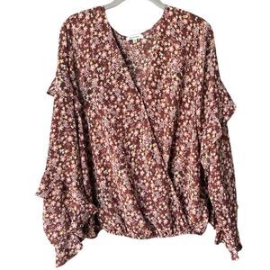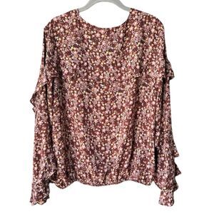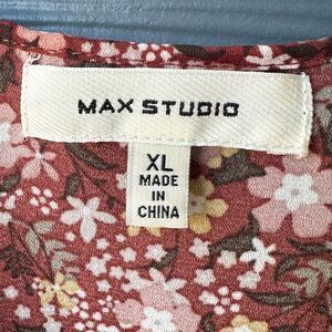 Max Studio Floral Long Sleeve Blouse Maroon Size XL