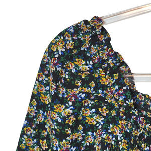 Max Studio Floral Peplum Top Blouse Smocked Blue Pink Yellow Boho Cottagecore L