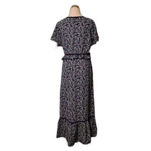 Max Studio Floral Ruffle Purple Blue Midi Dress Size L