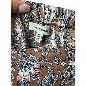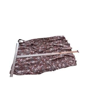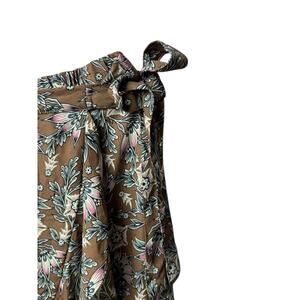 Add a romantic, flowy touch to your wardrobe with this Max Studio floral ruffle wrap skirt. It features a soft taupe-brown base with delicate pink, ivory, and sage blooms, creating a dreamy cottagecore aesthetic. The adjustable waist tie and layered ruffle hem give it a flattering drape that moves beautifully with every step.