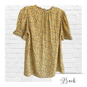 Max Studio, Yellow Floral, Feminine, Coastal Grandma, Grandma Core, Soft, Machine Washable, Summer, Vacation, Puffed Sleeves, Ruffles, V-neck, Split Neck, Spring, Twee, Garden Core, small print, Large, Butter Yellow, Pastel, Cottage core, Fairy Garden,