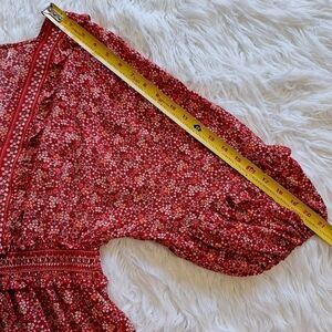 Max Studio Floral V-neck Midi Dress with Balloon Sleeves