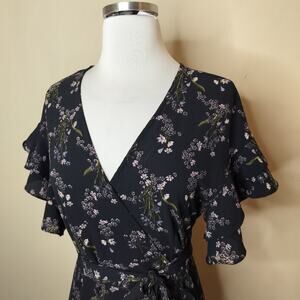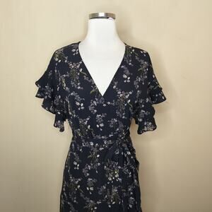 Max Studio Floral Wrap Midi Dress Ruffled Short Sleeve