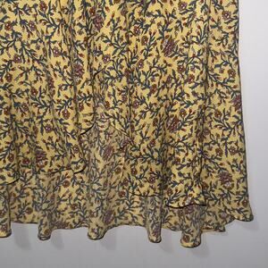 Max Studio Floral Wrap Midi Skirt Yellow Ruffle Hem Tie Waist | Size Medium