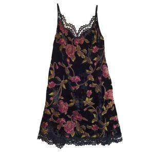 Max Studio Flowers 💐 & Lace Slip Dress Medium Velvet Spaghetti Straps Lace Trim
