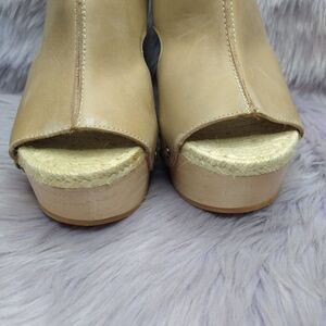 Max Studio Foal Leather Wedge Booties Platform Sandals Womens Size 10 Beige Stud