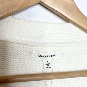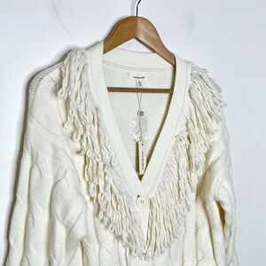 Max Studio Fringe Cable Knit Cardigan Sweater Cream Womens Small Button up