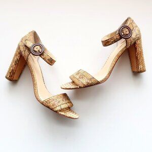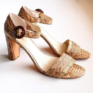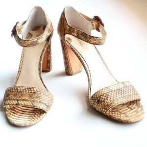 Max Studio Genuine Snakeskin Block Heel Ankle Strap Sandals Summer Shoes Size 10
