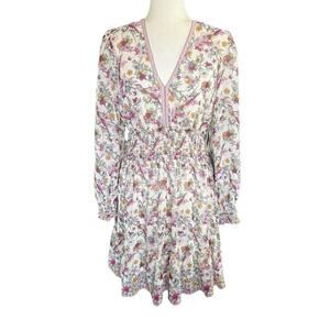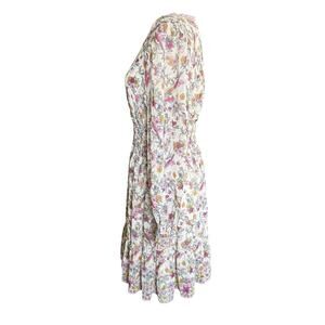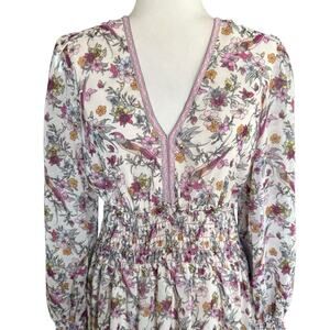 Max Studio Geometric Floral Print Smocked Dress Pink Romantic Boho Floral M