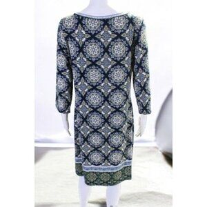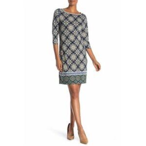 Max Studio Geometric Navy Quarter Sleeve Printed Mini Shift Dress NEW Large