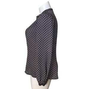 Max Studio Geometric Print Blouse Button Front Balloon Sleeves, Women's Size L