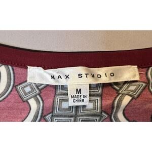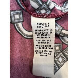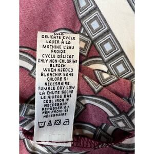 Excellent condition, no flaws. Burgundy geometric print dress with a retro-inspired pattern, 3/4 sleeves, soft stretch fabric, and a flattering flare hem. Trendy patterned style perfect for work, casual wear, or fall outfits.