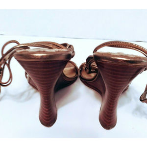 Max Studio Gold Heels 5.5 M Sandals Braided Ankle Straps Stack Heels