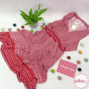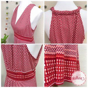 Beautiful and flowy A-line halter top summer dress! Fun red and white geometric pattern! Lightweight and stretchy. Pleated front. Brand new with tags!