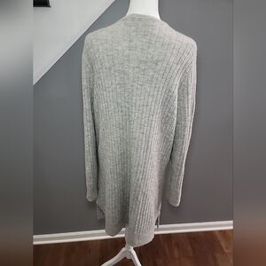 Max Studio Gray Black Herringbone Open Front Long Cardigan Sweater Size L