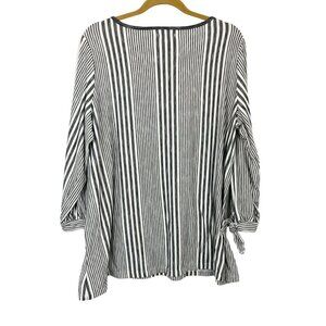 Max Studio Gray & White Striped Long Sleeve Shirt Bow Tie Cuffs - Size 1X