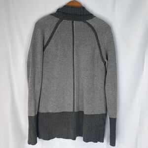 Max Studio Gray White Striped Shawl Collar Open Front Cardigan Thumbholes Sz SM