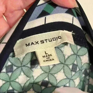 Max Studio Green Blue Geometric Faux Wrap A-Line Dress