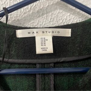 Max Studio Green & Blue Open Front Long Sleeve Womens Overcoat Size Medium