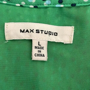Max Studio Green Blue Polka Dot Pleated Long Sleeve Blouse Size Large