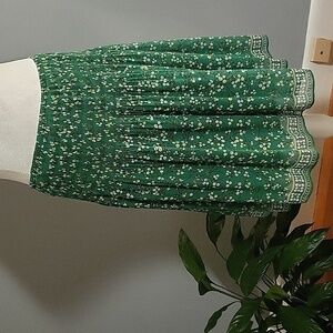 Chic green mini skirt with floral pattern. Perfect for casual outings. Lightweight and stylish.