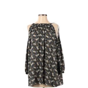 Max Studio Green Floral Pattern Lightweight Cold Shoulder Blouse Women's Small